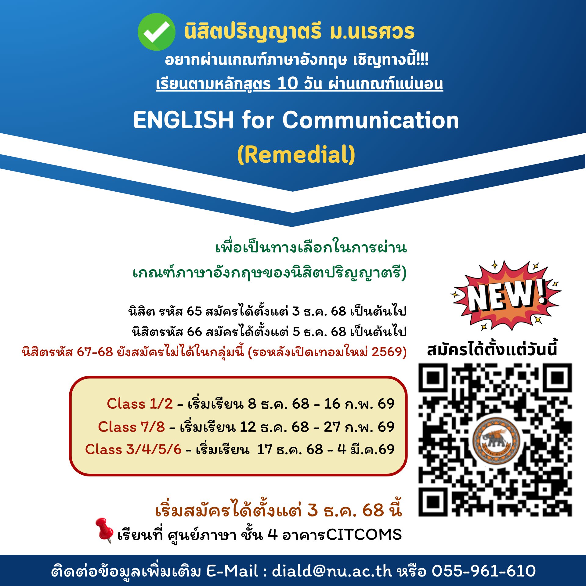 สำหรับผู้เรียน EPE ครั้งที่ 1/2569 / For EPE Student (November to December 2025) อ่านต่อ >>   28 ต.ค. 2568