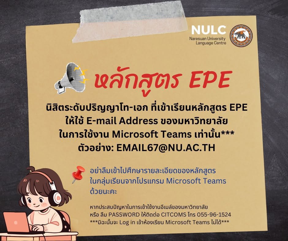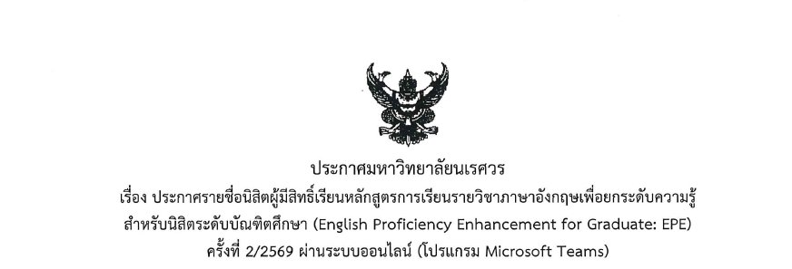 สำหรับผู้เรียน EPE ครั้งที่ 2/2569 / For EPE Student (January to March 2026) อ่านต่อ >>   27 ม.ค. 2569