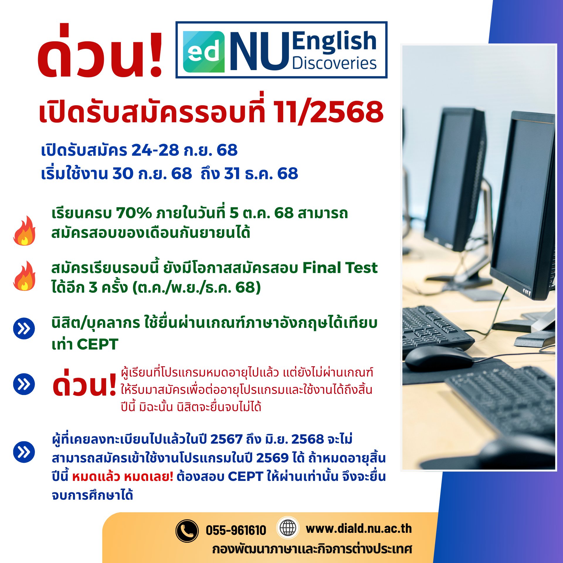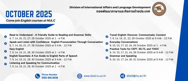 DIALD เปิดหลักสูตรอบรมภาษาอังกฤษประจำเดือนตุลาคม 2568 (On-site) อ่านต่อ >>   29 ก.ย. 2568