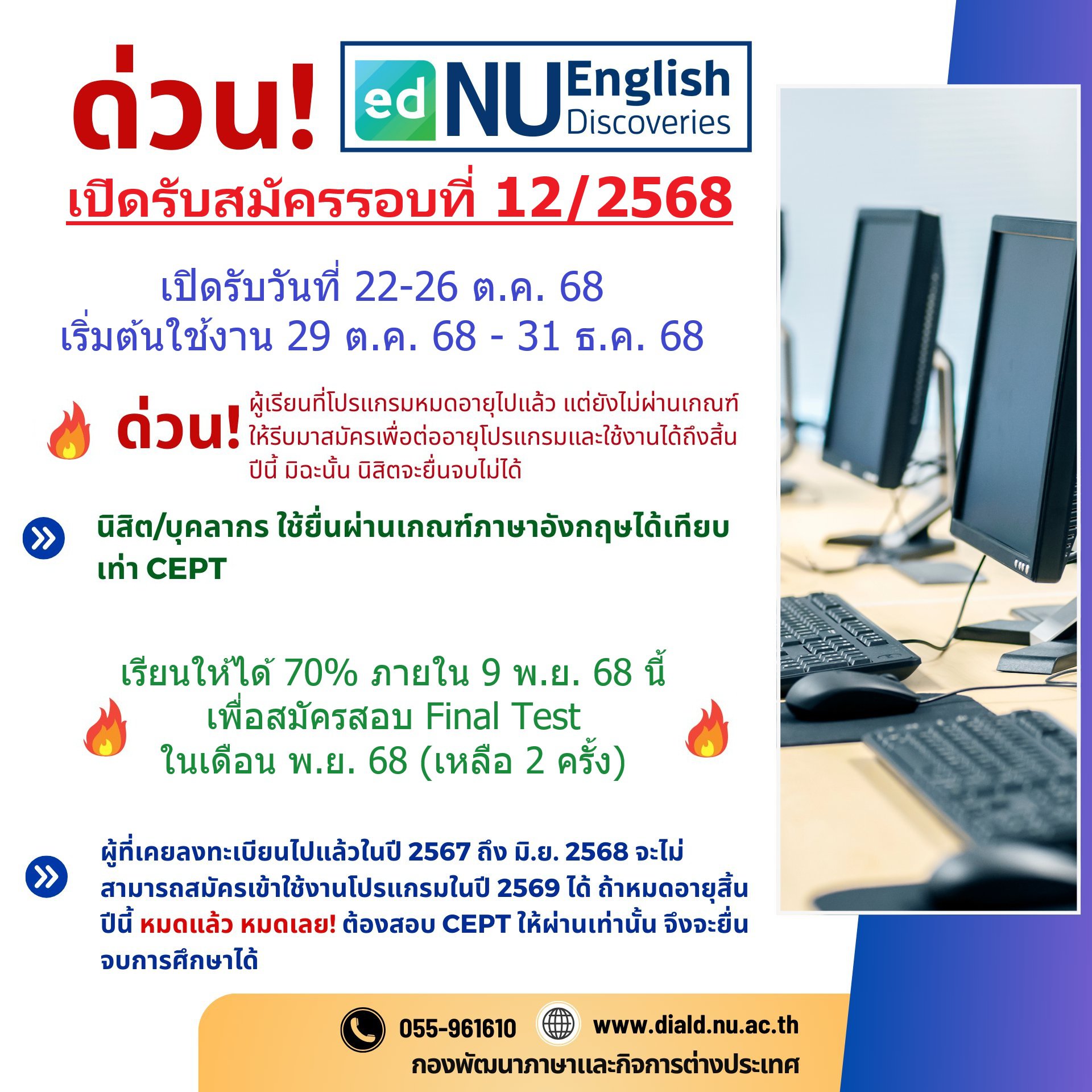 เปิดรับสมัครสอบ Final Test (English Discoveries) ประจำเดือน ตุลาคม 2568 อ่านต่อ >>   6 ต.ค. 2568
