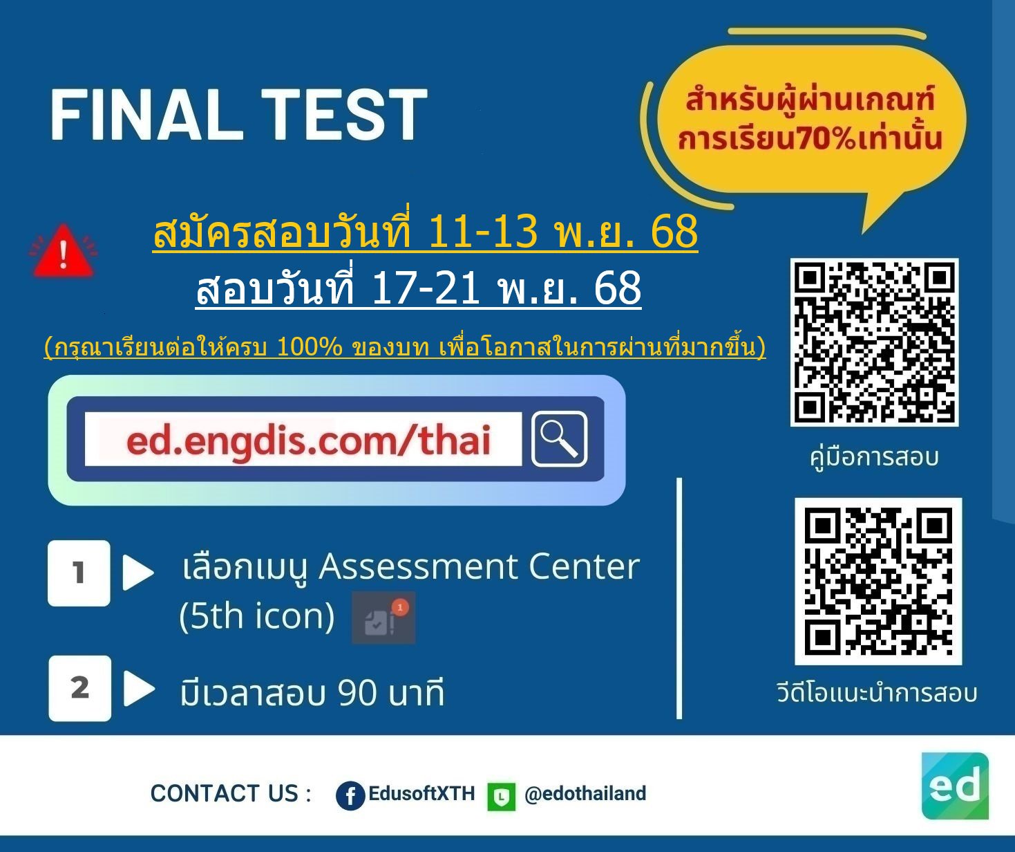 เปิดรับสมัครสอบ Final Test (English Discoveries) ประจำเดือน สิงหาคม 2568 อ่านต่อ >>   4 ส.ค. 2568